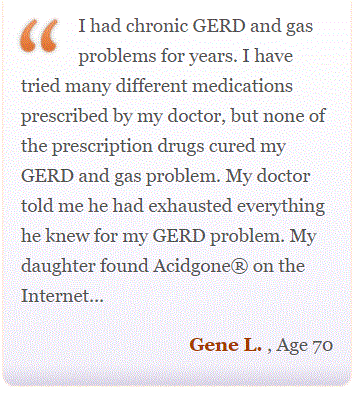 If you are suffering from recurring heartburn or acid reflux, try Acidgone®. It is non-addictive, gluten free, and completely natural. We now ship overseas. If you are not satisfied with the result, you may return the product for full refund.